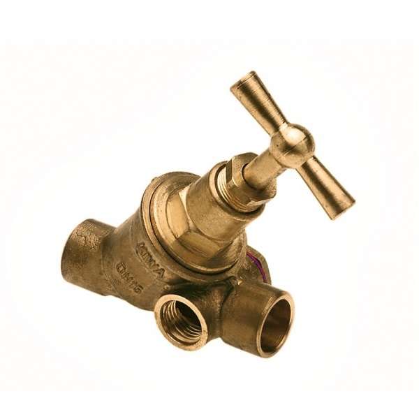 MESSING SOLDEER STOPKRAAN of TAPKRAAN met aftapaansluiting ¼”